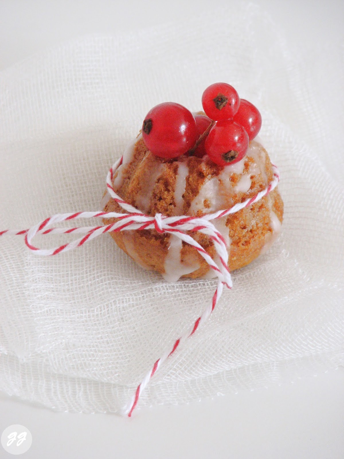 Ich habe nun etwas Puderzucker mit Zitronensaft angerührt und über den Gugeln verteilt. Darauf wurde jeweils eine frische Beere in die Mitte gesetzt.