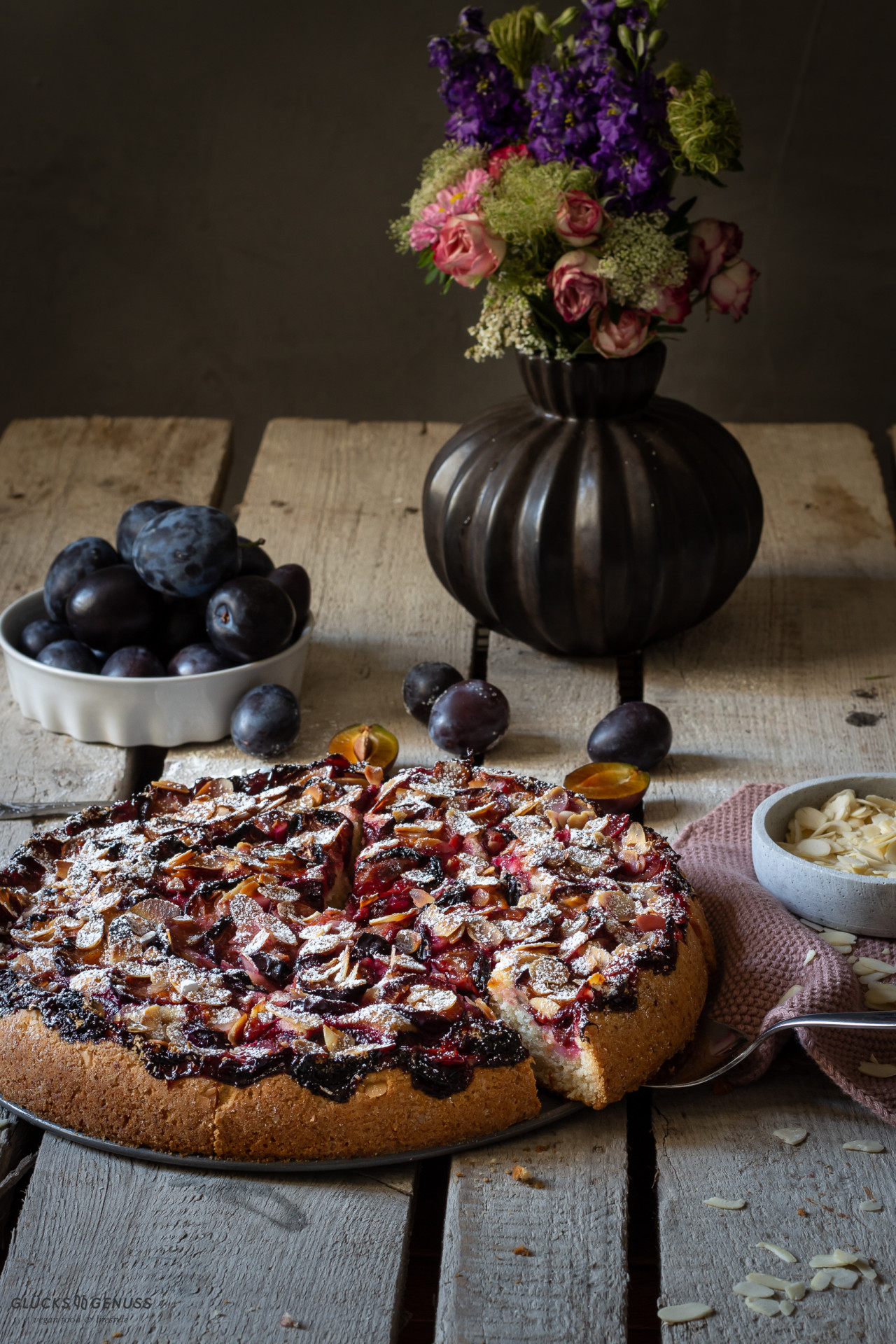 Fluffiger Zwetschgenkuchen mit Mandeln
